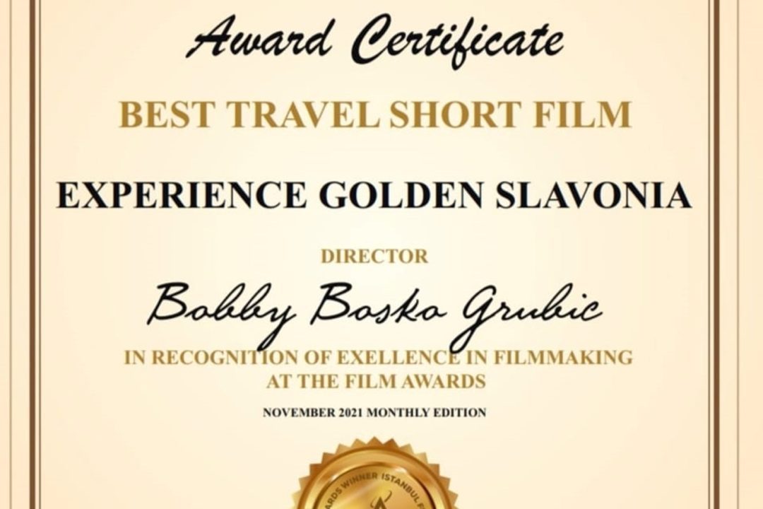 Promotivni film Turističke zajednice Požeško-slavonske županije Experience Golden Slavonia osvojio je nagradu u kategoriji Best travel short film – najbolji kratki putopisni film na IFA Istanbul filmskom festivalu, a ubrzo nakon toga još jednu – Best Travel Film – Najbolji turistički film na festivalu KIEZ BERLIN.