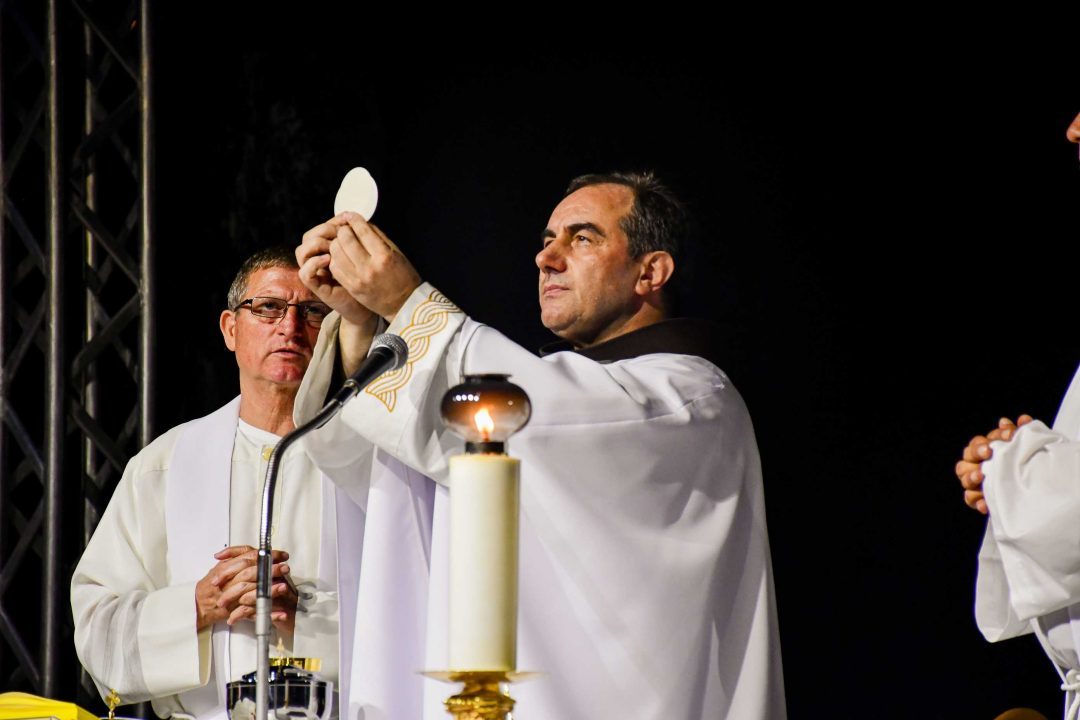 Program je započeo u 19:30 sati kada je fra Ivan Matić predvodio svetu misu i euharistijsko klanjanje, uz glazbenu pratnju Zbora mladih Gaudium, koji je dodatno upotpunio svečanu atmosferu.
