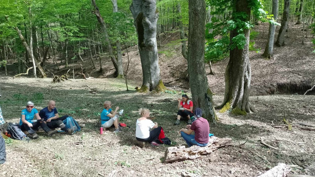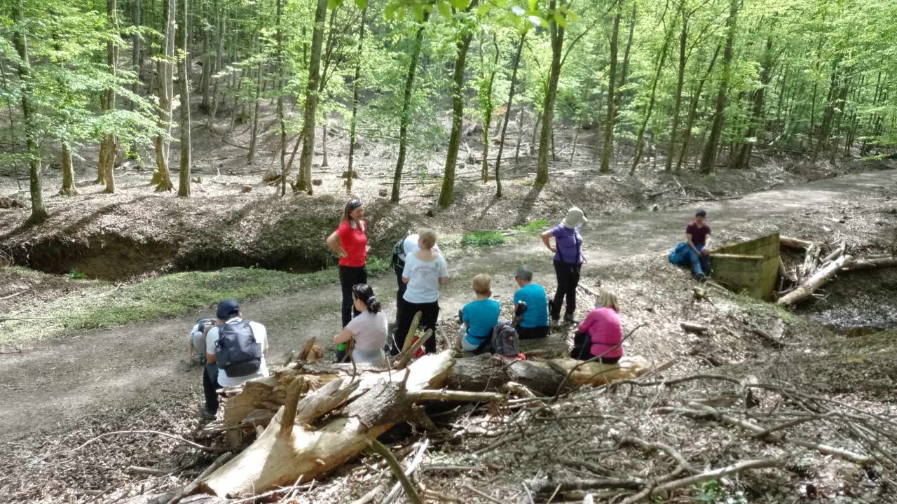 Poučna staza Hajderovac u Kutjevu – izlet ove nedjelje nikako nije bio običan planinarski izlet kao što je to činilo u objavi, jer Vinko Krsnik nikako nije običan planinar. On je veliki ljubitelj planina, ljudi i planinarstva. Za sve svoje resurse i stanja na raspolaganje i kao ugledni domaćin, osmislio je izlet koji je nadmašio naša očekivanja. Krećemo od Trga graševine pedeset (50) planinara prema OPG Krsnik i od te prve postaje kreće naša avantura koja je početak od još pet, šest postaja, gdje nas je domaćin dočekao raznim vrstama pića, kolača i voća. Uživanje u vinogradima i pogledima na Kutjevo oživjeli smo se ne samo ljepotom prirode već i bogatom tradicijom vinogradstva u regiji te upoznavanje novih ljudi i dijeljenje iskustva. Sunce koje se visoko na nebu dodatno je pojačalo osjećaj osvježenja dok smo ulazili u šumu. Na poučnim tablama smo saznali zanimljive priče o povijesti i tradiciji ovog dijela šume. Nekad je Kutjevo bilo povezano prugom kojom se izvlačilo drvo, što je bilo zanimljivo otkriće za sve nas. Jesmo li mi danas našli tragove nekadašnje Kutječanke pružne dionice i na ostatak ugljena na mjestu gdje se čistila lokomotiva? Vinko nam je pokazao komadić ugljena, mogli smo razgledati mjesto gdje je bila lugarnica i okretnica pruge sa utovarnim rampama. Slušali smo priče o tradiciji i prošlim vremenima i osjećali se važno što smo i sami dio te priče. Poučna staza koja nije zahtjevna ima 15 točaka i duga je 15 km. Na kratkom potezu nalazi se veliki broj šumskih drveća – 64 i oko 90 vrsta zemljanog bilja. Želim izraziti najdublju zahvalnost OPG Krsnik i Vinku Krsniku na vrlo zanimljivom izletu i gostoprimstvu koje nam je pružio.