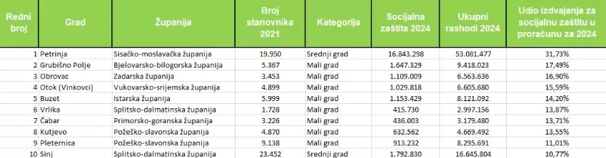 Ovo jasno pokazuje da lokalne zajednice sve više prepoznaju važnost socijalne uključenosti i brige za građane. Gradovi poput Kutjeva, Grubišnog Polja, Đurđevca i Zadra ne štede u pomoći starijima i ranjivim skupinama, dok Petrinja i Obrovac predvode ljestvice po izdvajanjima po glavi stanovnika.