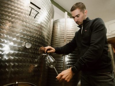 „Odmalena sam bio s djedom u podrumu, vinogradu, pa i u traktoru. Još dok nisam znao ni slova, najzanimljivije mi je bilo ulaziti u cisterne i prati ih. Isprva me bilo strah tog velikog, hladnog prostora, ali s vremenom sam se naviknuo, i taj miris, odjek i osjećaj unutra postali su mi nešto posebno. Sve mi je to tada bila igra,“ priča Lovro s osmijehom. „Kad sam upisao fakultet, dida me pitao hoću li ja to nastaviti i mogu li to raditi. Rekao sam – probat ću, pa ćemo vidjeti što nam budućnost nosi.“