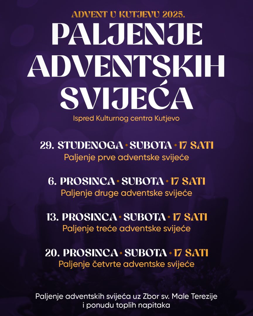 Bliži nam se najljepše doba godine – doba iščekivanja Božića. U Kutjevu će i ove godine biti održano tradicionalno paljenje adventskih svijeća, a zbog cjelokupnog adventskog programa koji će se održavati na parkiralištu Kulturnog centra u Vrtićkoj ulici, paljenje svijeća bit će organizirano ispred Kulturnog centra, koji se nalazi pokraj Dječjeg vrtića Grozdić.