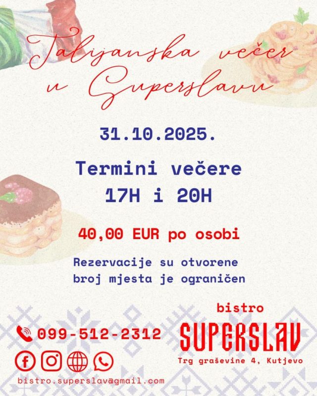 Doživite Italiju u srcu Superslava i prepustite se večeri ispunjenoj okusima, mirisima i užitkom.
