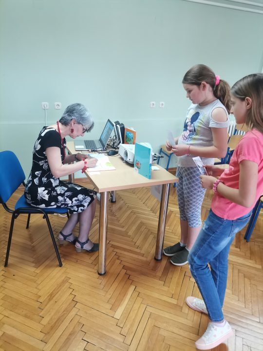 Književnica i učiteljica Irena predstavila je svoje dvije knjige: Recept za radost i Mama, kupi mi konja!. Književni susret protekao je u veseloj atmosferi. Književnica je prvo predstavila knjigu priča Mama, kupi mi konja!. Pročitala je zanimljivu i simpatičnu priču Bombonijera koja je u pravilu autobiografska. Priča se uistinu dogodila kada je Irena bila djevojčica. Zatim su prisutni slušali predstavljanje zbirke pjesama Recept za radost. Knjiga je specifična po tome što su sve ilustracije u knjizi nacrtala djeca. Uz svaku pjesmu postoji poseban crtež, ali i posebna priča. Učenici su zaista s pažnjom pratili predstavljanje knjiga, a na kraju je naravno ostalo vremena za pitanja i komentare za našu gošću. Izvorna poveznica