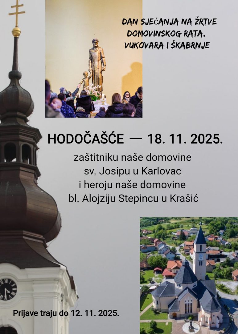 Župa Kutjevo organizira hodočašće 18. studenoga 2025. godine povodom Dana sjećanja na žrtve Domovinskog rata, Vukovara i Škabrnje, u čast zaštitniku naše domovine, sv. Josipu u Karlovcu, te heroju naše domovine, bl. Alojziju Stepincu u Krašiću.