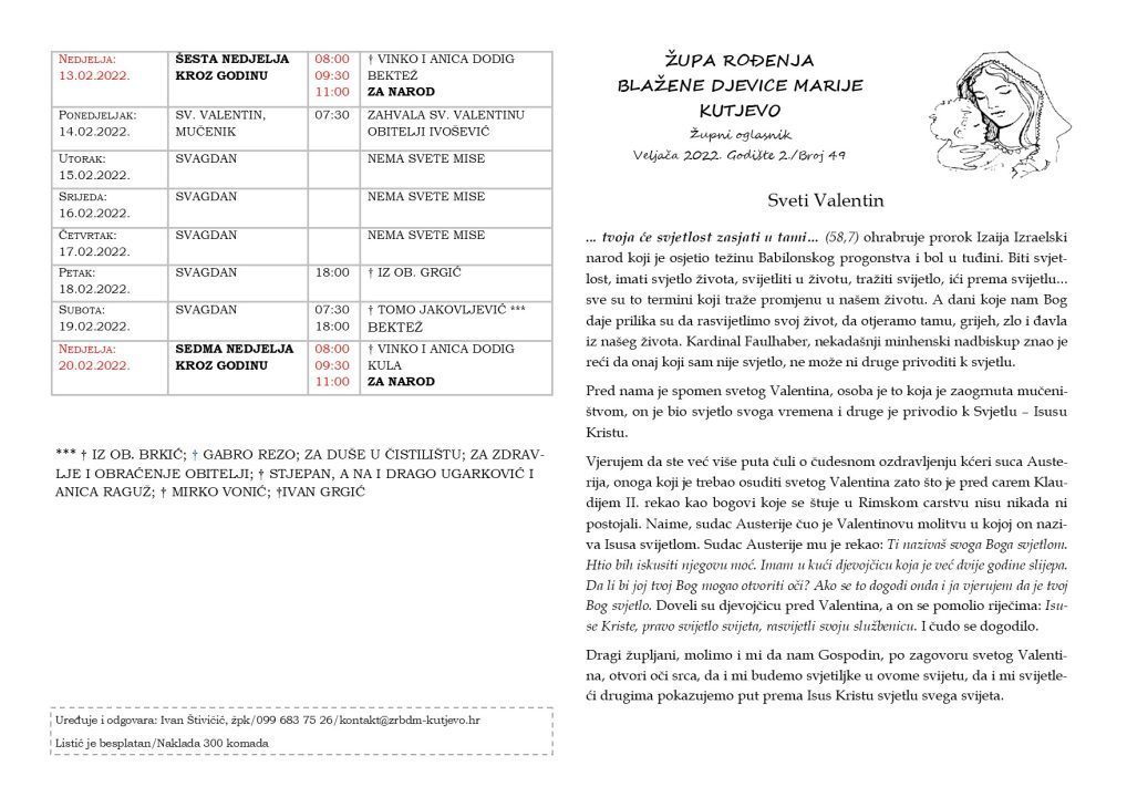 Župni oglasi: 13. – 20. veljača