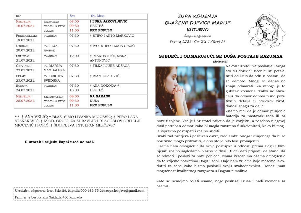 Župni oglasi: 18. – 25. srpanj