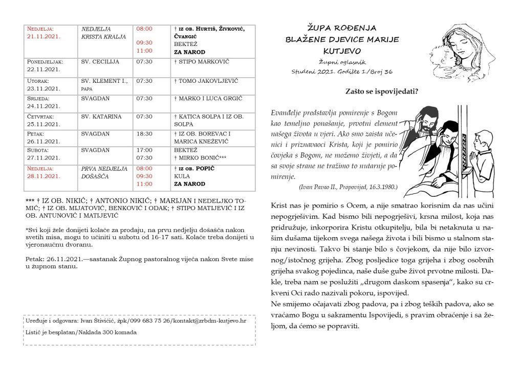 Župni oglasi: 21. – 28. studeni