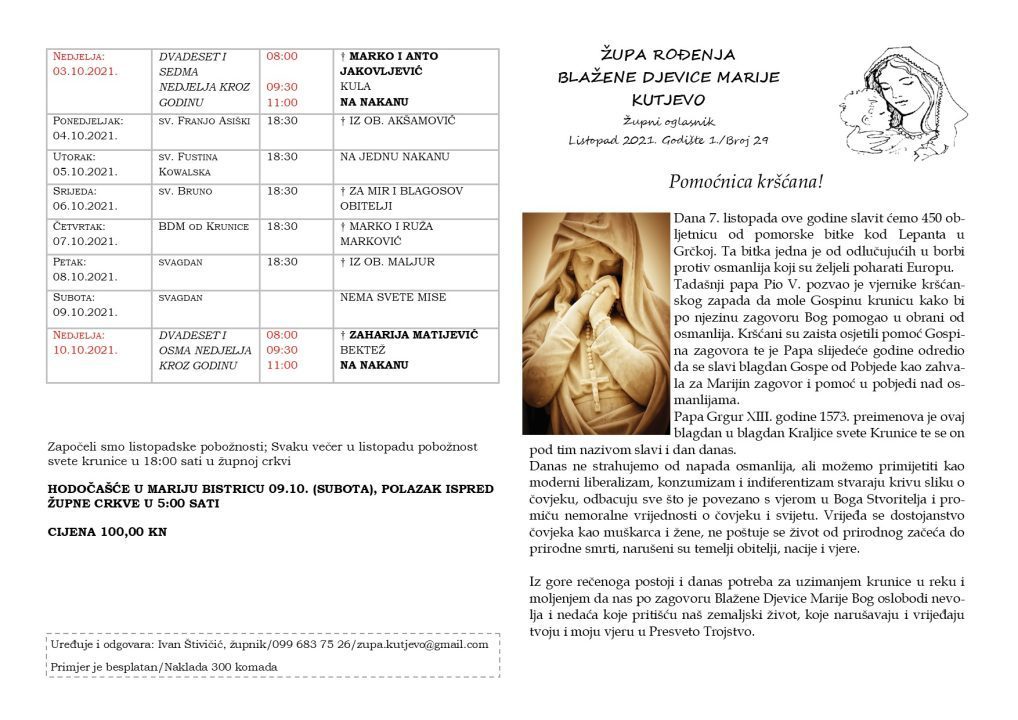 Župni oglasi: 3. – 10. listopad